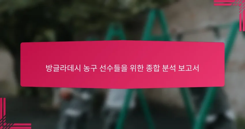 방글라데시 농구 선수들을 위한 종합 분석 보고서