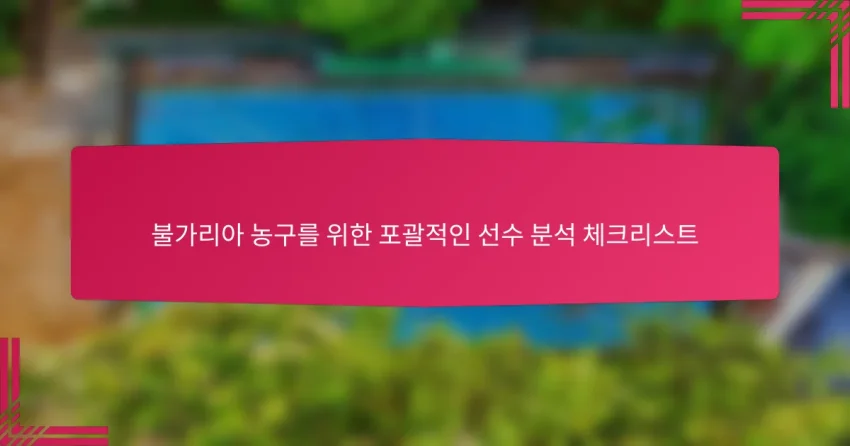 불가리아 농구를 위한 포괄적인 선수 분석 체크리스트