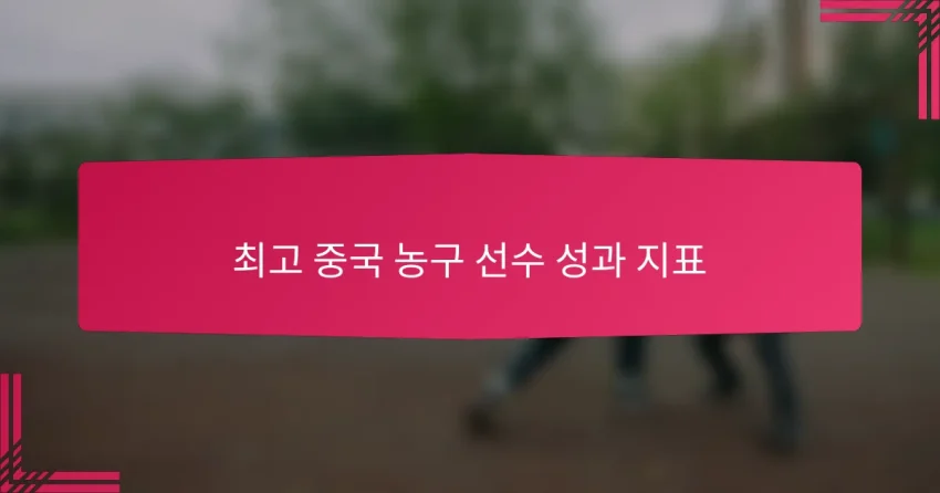 중국 최고의 농구 선수들의 주요 성과 지표는 무엇인가요?